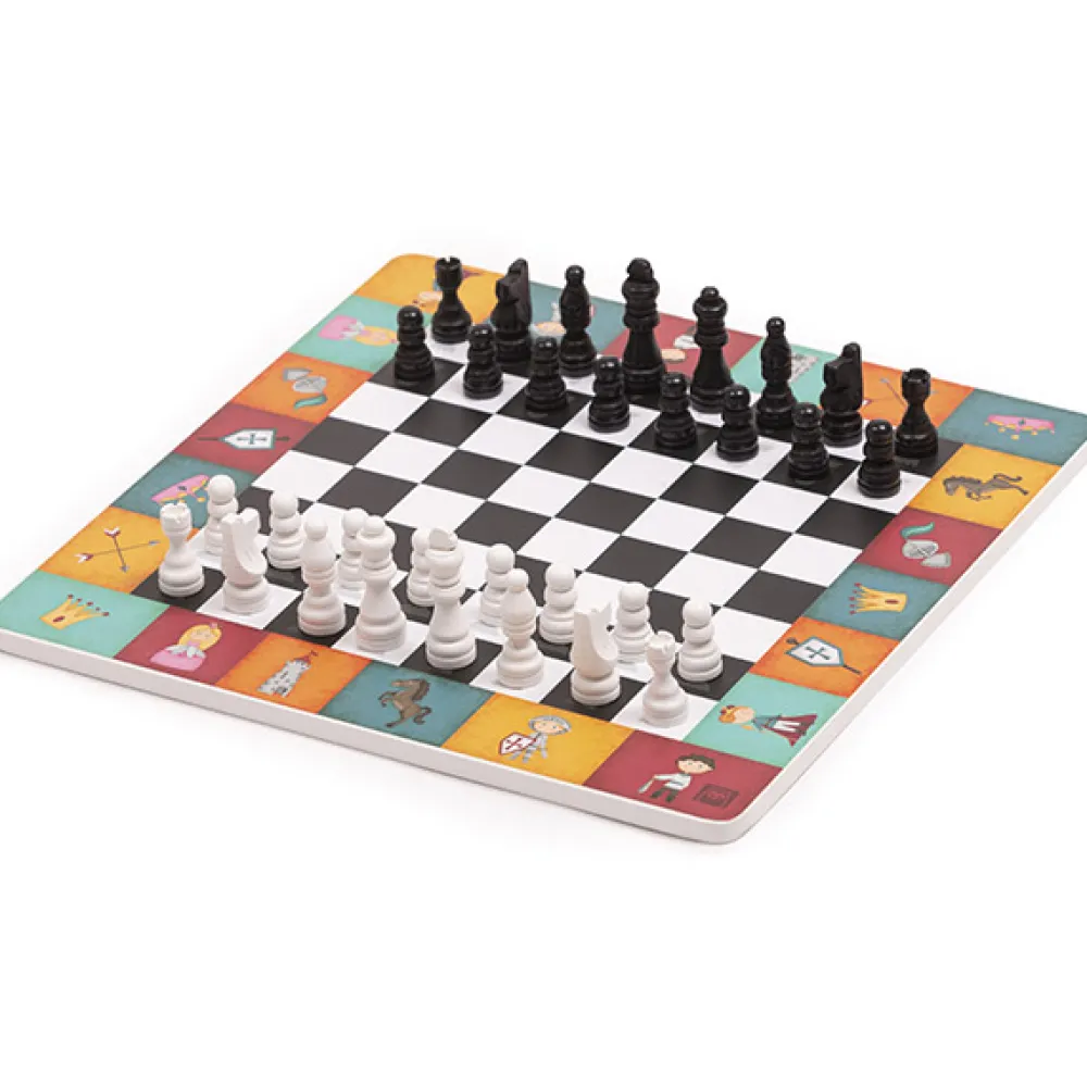 – 32 piezas de madera: 16 blancas y 16 negras.