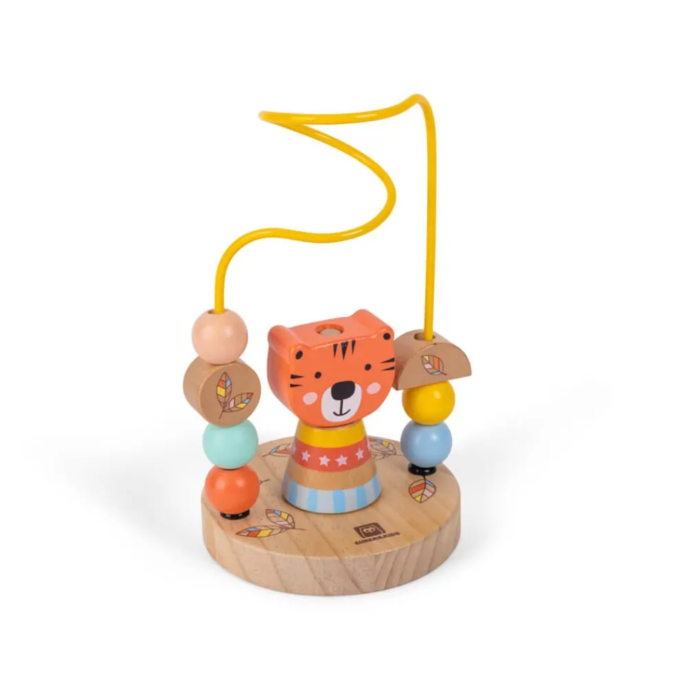 - Juguete de madera con dos opciones de juego: looping de cuentas y juego apilable.