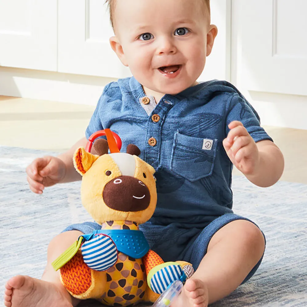 – El juguete mordedor de bandana de textura suave se separa para usarlo alrededor de la muñeca