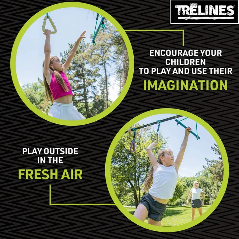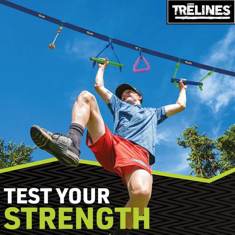 - Slackline de 15 metros con trinquete de metal reforzado y línea guía de 1,25 metros.