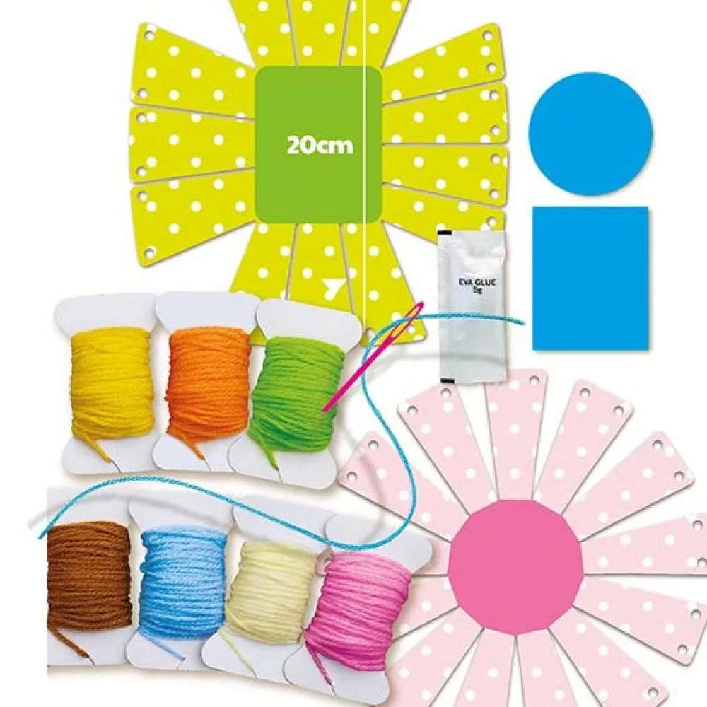 – Incluye: 2 plantillas para cestos, 1 aguja de plástico, 2 recortes de fieltro, 7 bobinas de hilo de color, 1 paquete de pegamento e instrucciones
