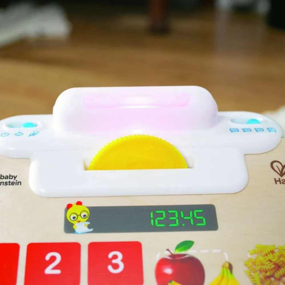 - Enseña a los niños los nombres de los alimentos, los números y las frases de compra mientras simulan «pasar por la caja» o «pagar» un artículo.