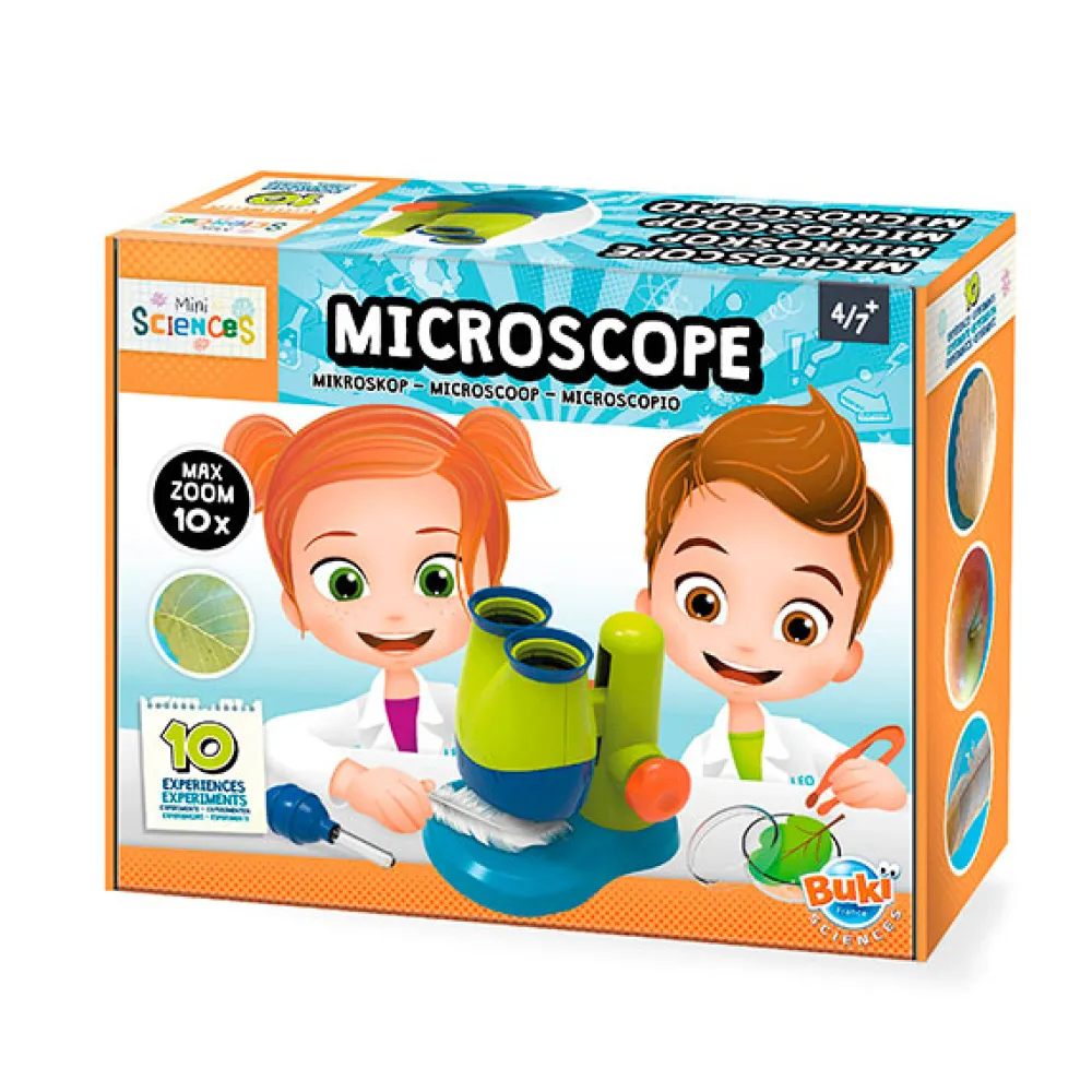 – Incluye: 1 binocular microscopio con luz LED, 1 pinza, 1 pipeta, una cajita, 10 experimentos con ilustración y 1 folleto para los padres.