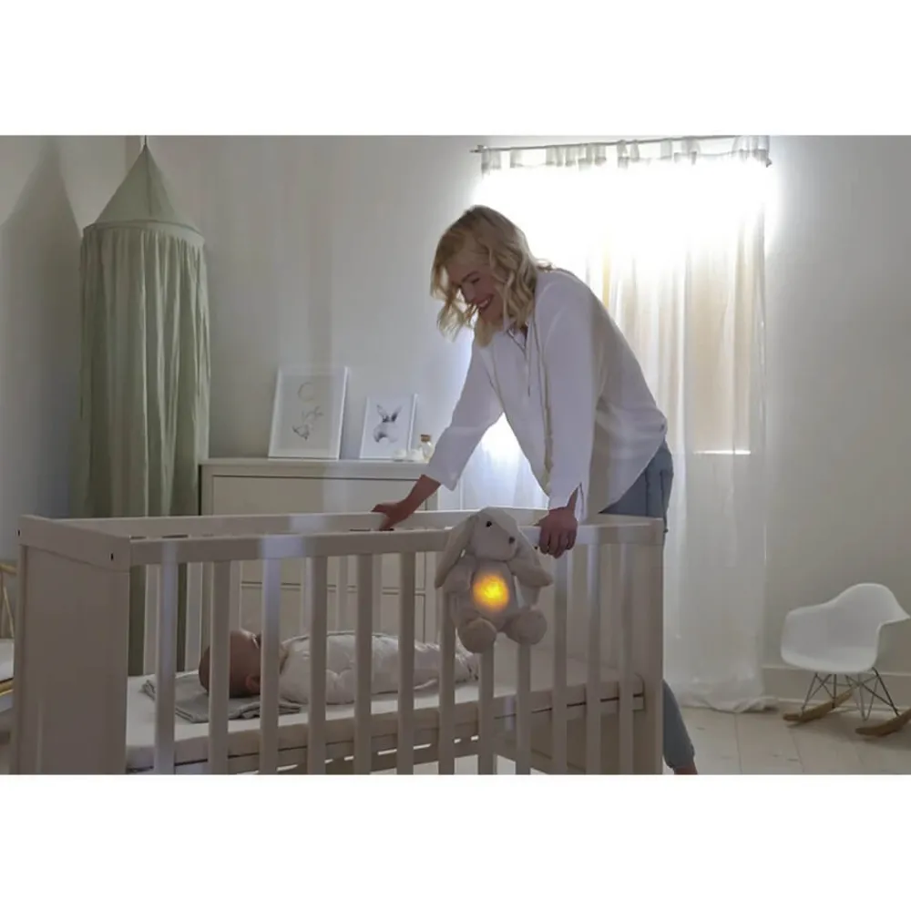 - Sonidos relajantes y luz suave para calmar al bebé.
