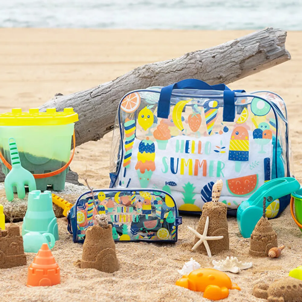 EUREKAKIDS Bolsa de playa transparente con base de red color naranja