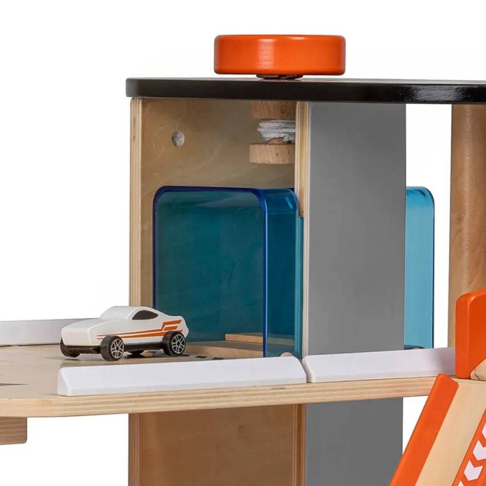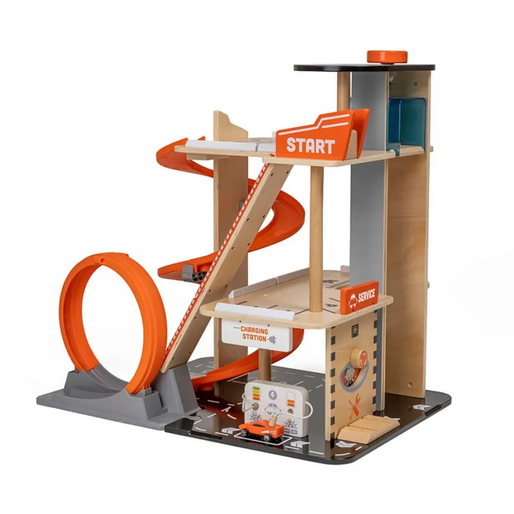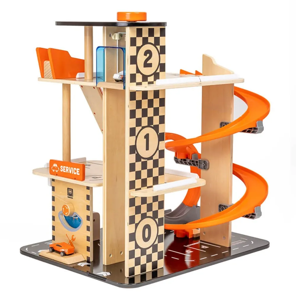 – Garaje fabricado en madera resistente y de alta calidad para proporcionar muchas horas de juego.