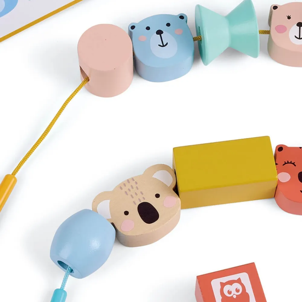 - Incluye 15 piezas de madera: 6 animales salvajes y 7 piezas de distintas formas.