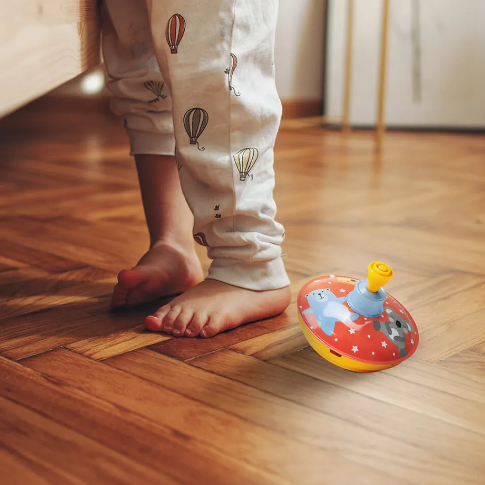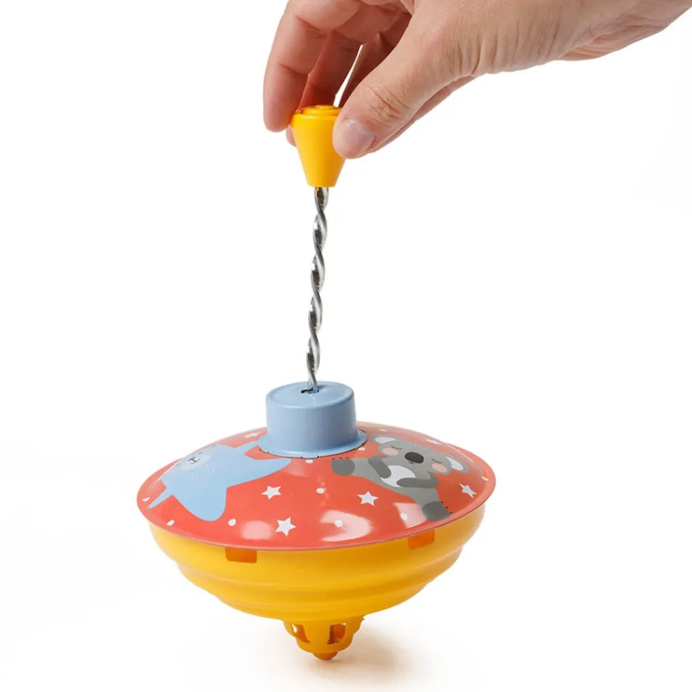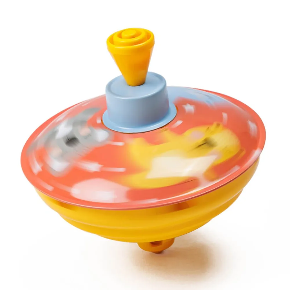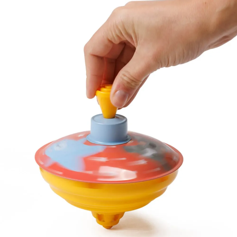 - Peonza fabricada en metal ligero y duradero.