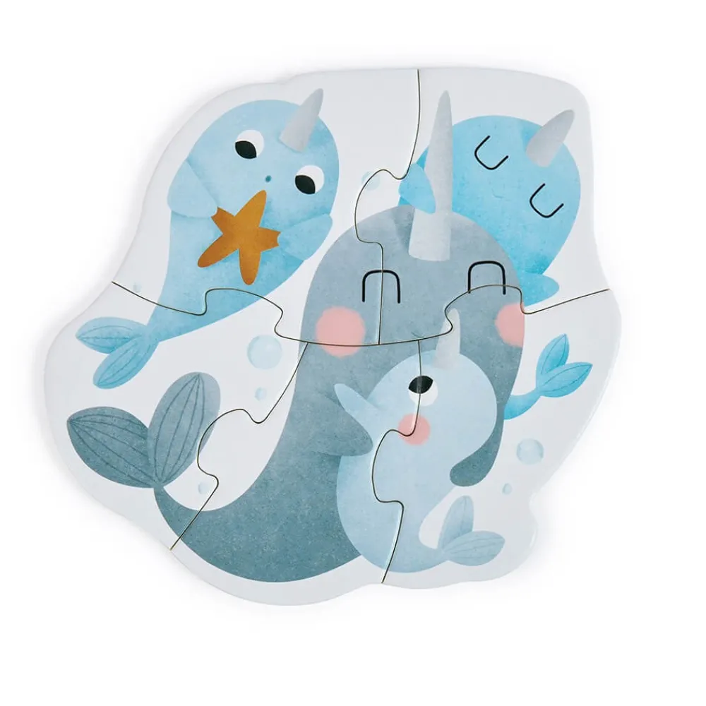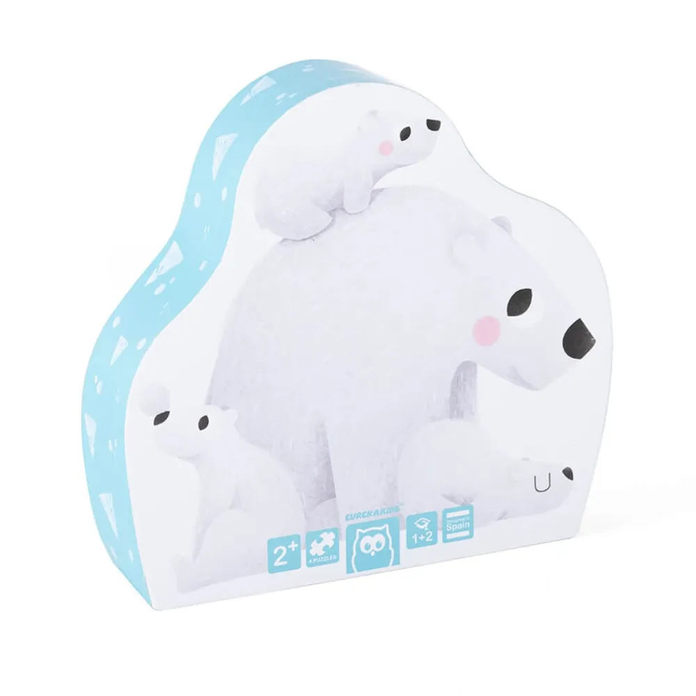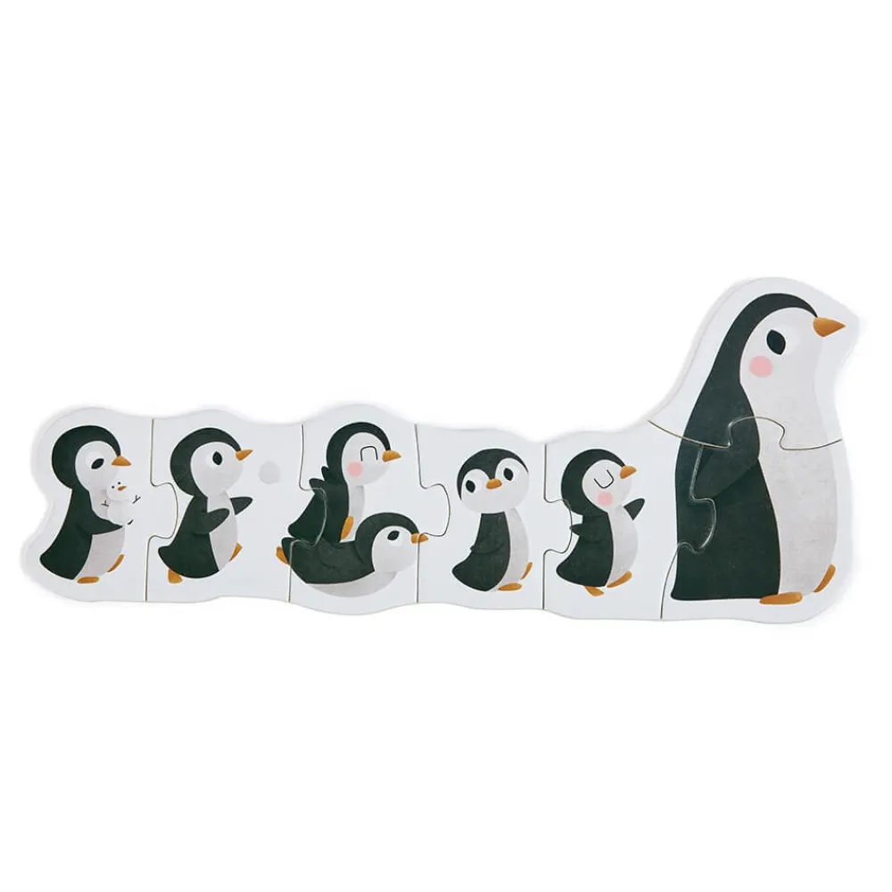 - Contiene 4 puzles distintos con forma de animales del bosque: 4 delfines, 5 focas, 6 osos polares y 7 pingüinos.