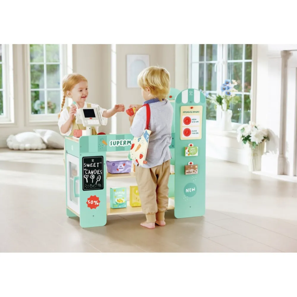- Incluye 50 accesorios: alimentos, dinero de juguete, bolsa de algodón y tarjetas educativas.