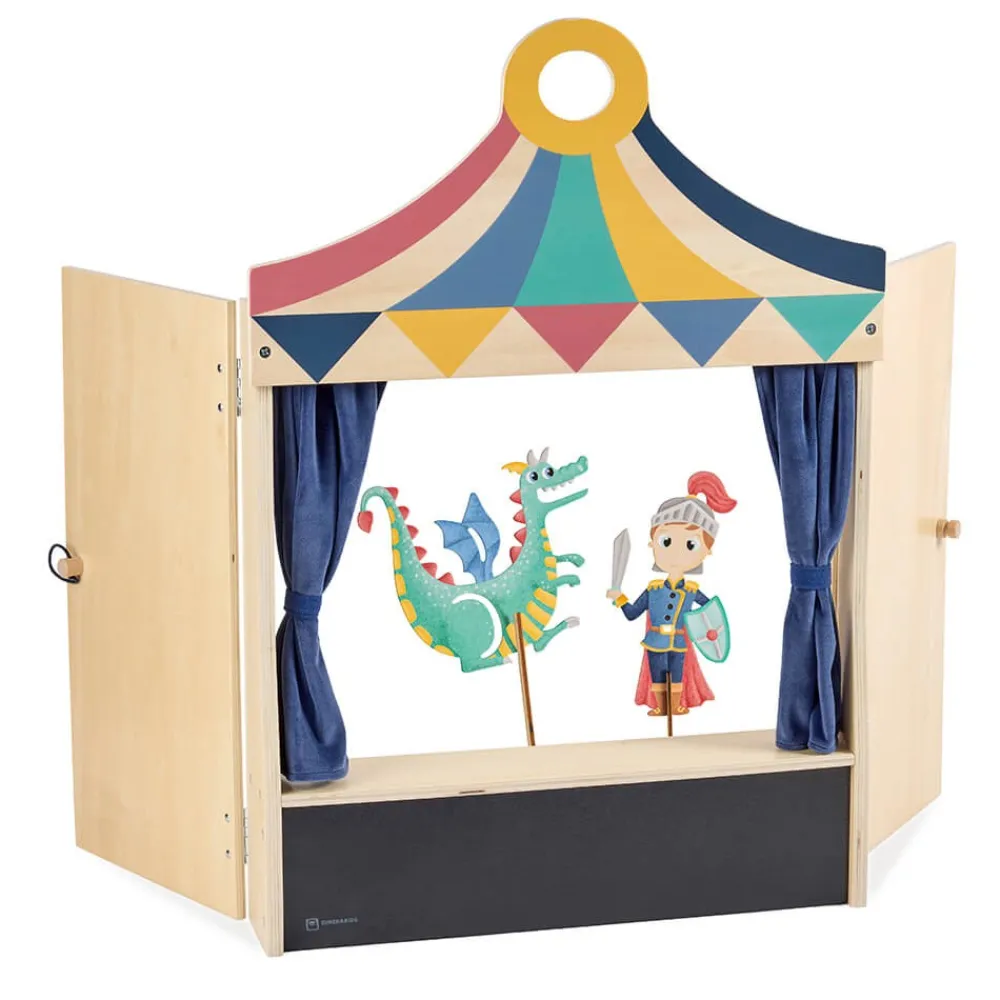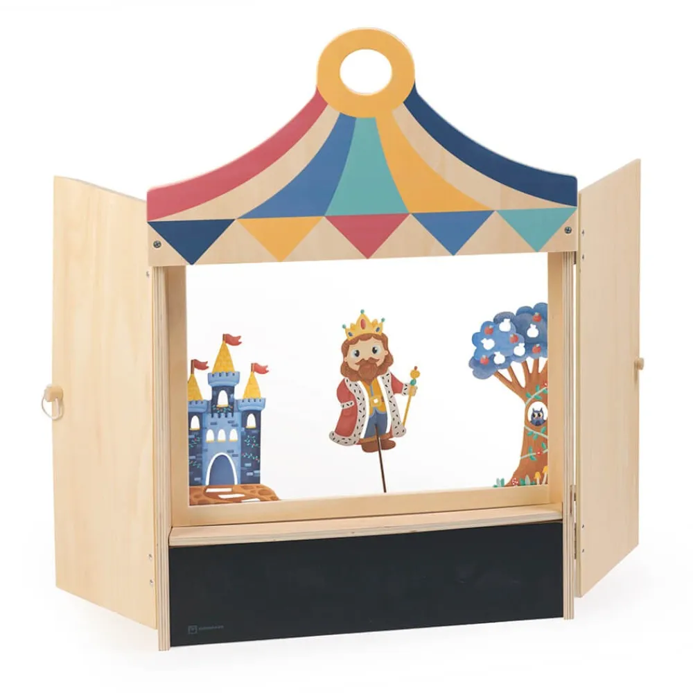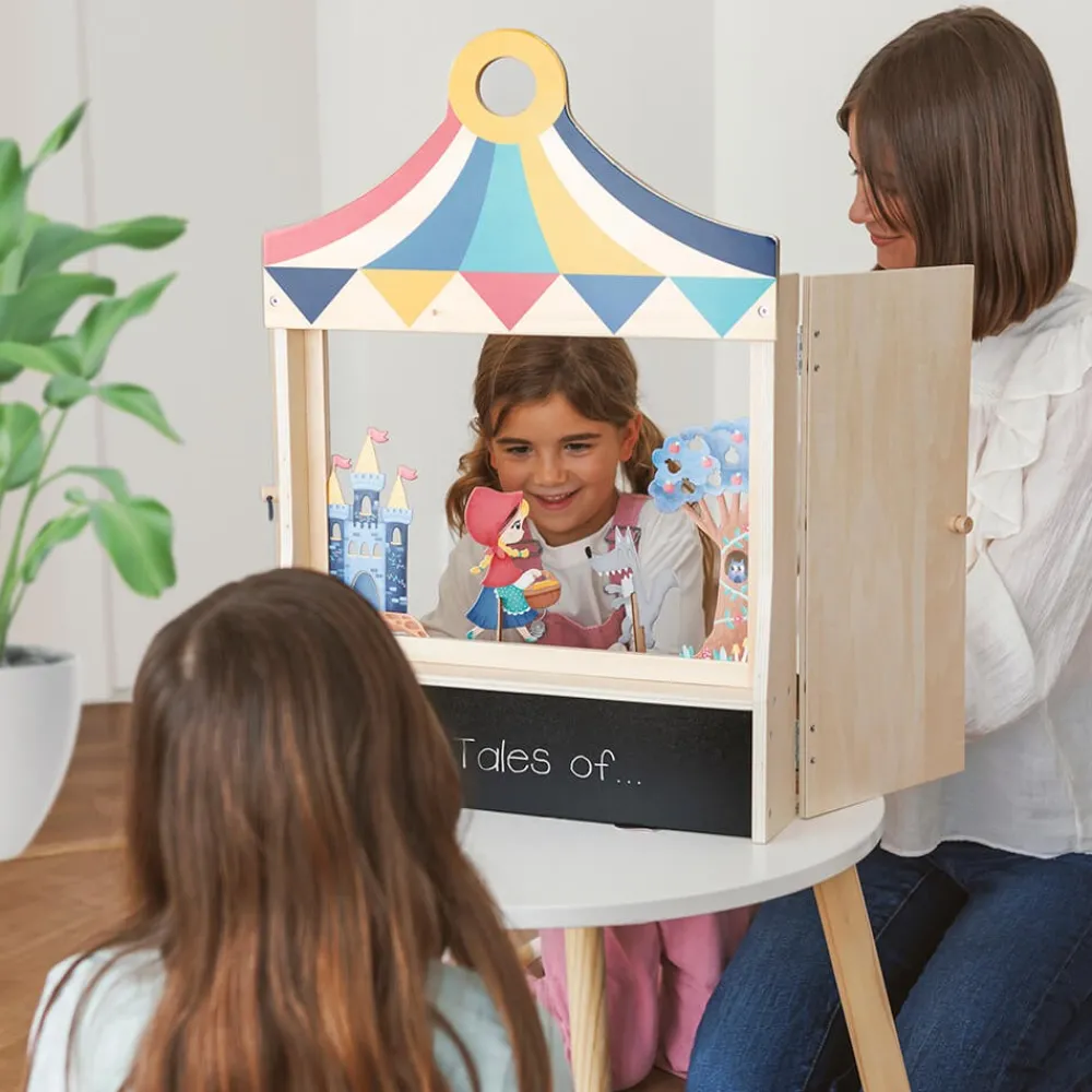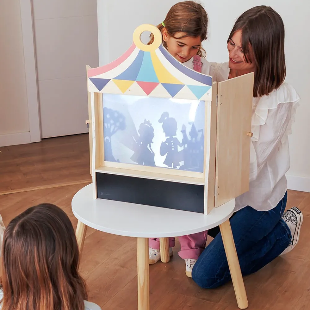 - Teatro de marionetas multifuncional: teatro de sombras y marionetas de colores.