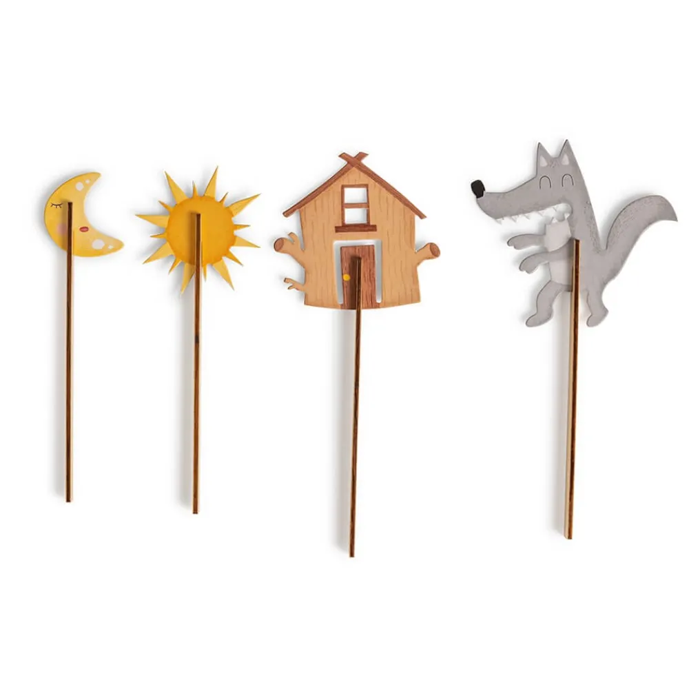 - Incluye 4 palos y 21 elementos para que puedan contar todo tipo de historias.
