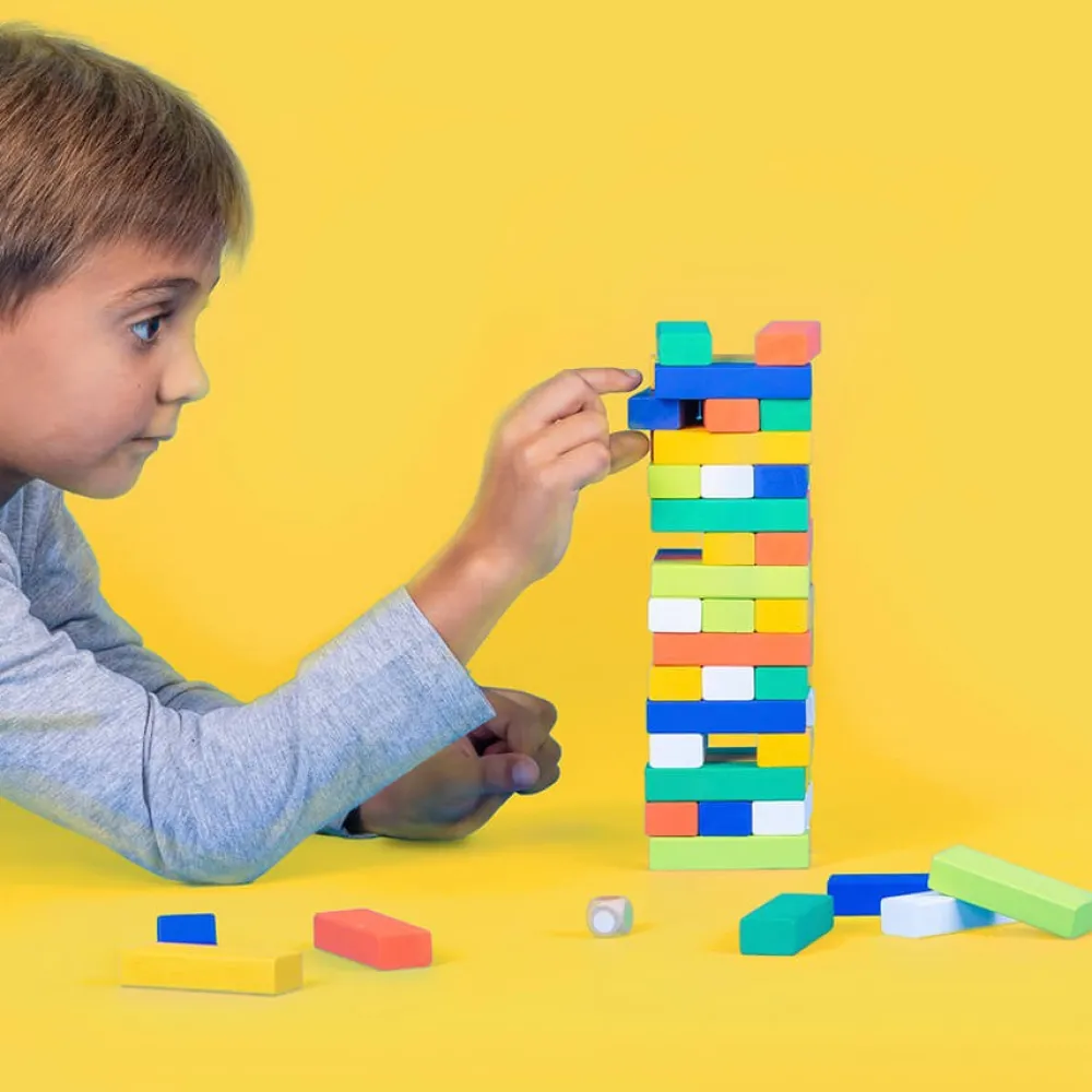 – Incluye 54 bloques de 6 colores (9 piezas por color), 1 dado con puntos de colores, 1 cartón para colocar las piezas e instrucciones de juego.
