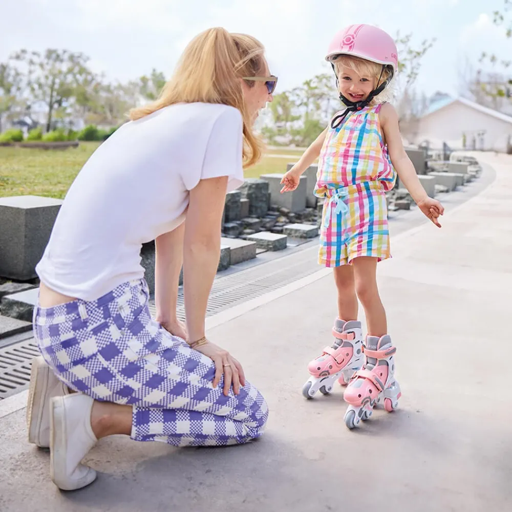 Lea las instrucciones antes de utilizar el producto y consérvelas para futuras consultas. Patines en línea de clase B. Destinado a patinadores con un peso de más de 20 kghasta 60 kg y una longitud del pie no superior a 260 mm. ¡ADVERTENCIA! SE DEBE UTILIZAR EQUIPO DE PROTECCIÓN (casco, rodilleras, coderas, muñequeras, etc.)y un dispositivo reflectante. La conversión del modo de aprendizaje (2 ruedas traseras paralelas) a 4 ruedas en línea debe realizarla un adulto responsable. Utilizar siemprebajo la supervisión de un adulto. El juguete debe utilizarse con precaución, ya que se requiere destreza para evitar caídas o colisiones que causen lesiones al usuario o aterceros. El niño debe estar supervisado cuando utilice los patines. No utilizar al anochecer. No utilizar donde haya tráfico. FABRICADO EN CHINA. Instrucciones de uso y datos de contacto del fabricante dentro del embalaje del producto. Si tienes dudas, contáctanos aquí.