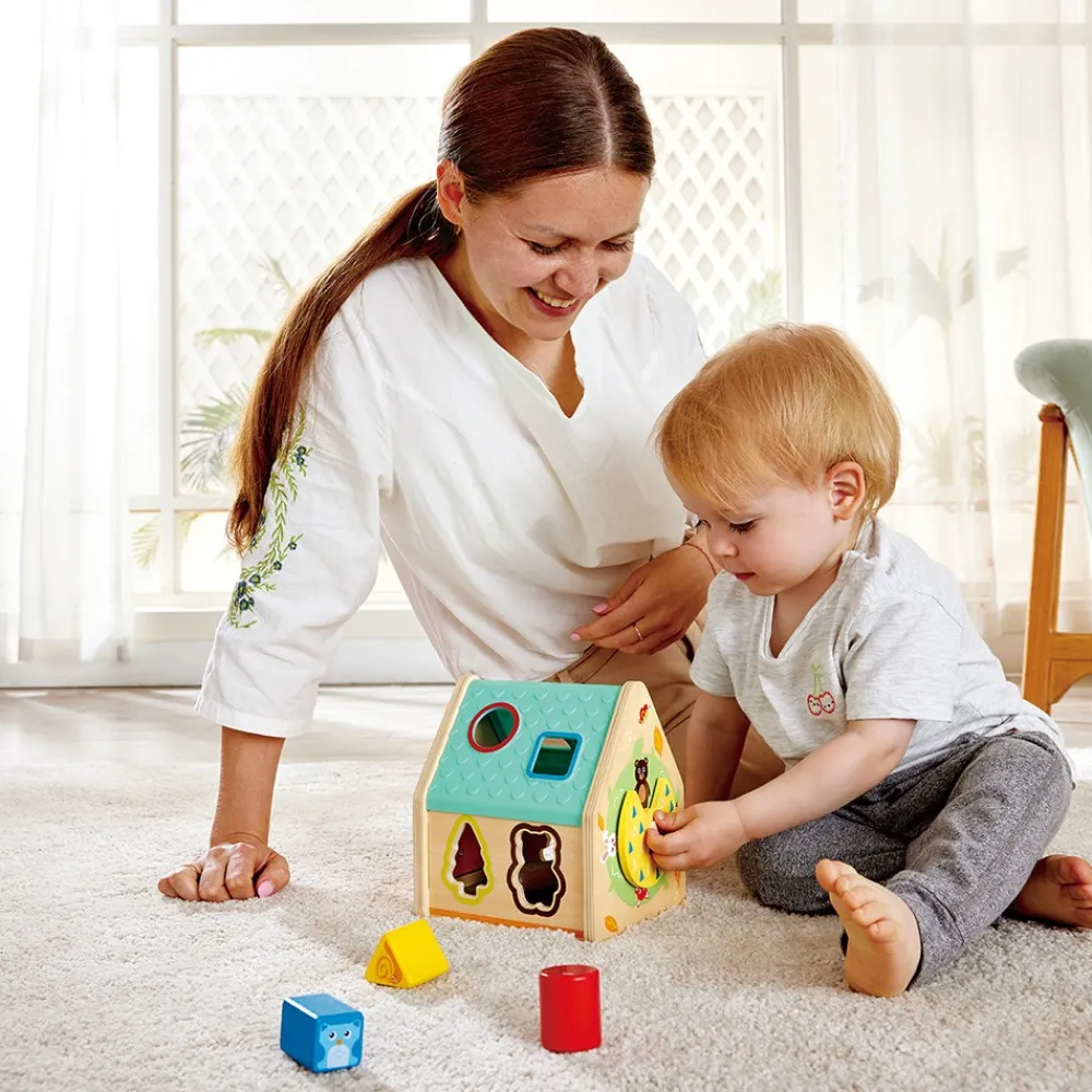 - Con este juguete, los niños pueden clasificar formas o utilizarlo como «casa de muñecas», donde los personajes animales pueden vivir y jugar.