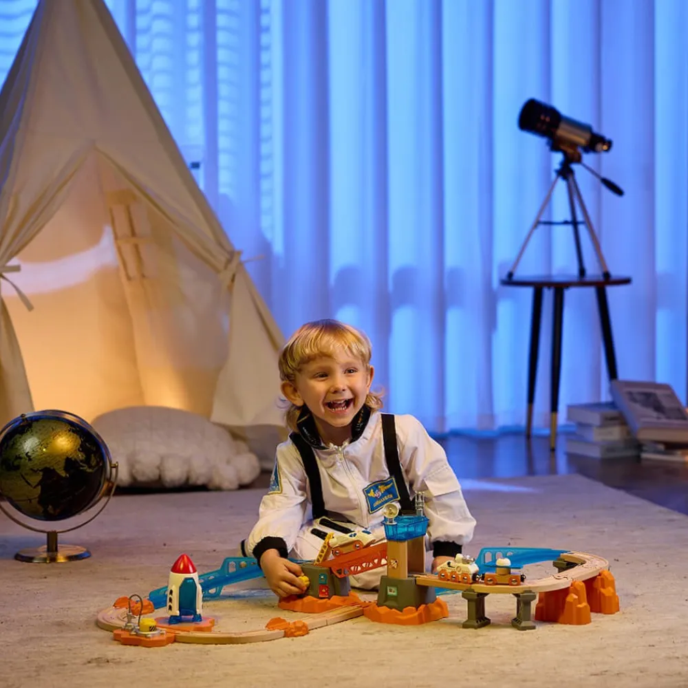 - Juego educativo: Promueve el desarrollo cognitivo, la resolución de problemas y la coordinación mientras los niños exploran el universo del espacio.