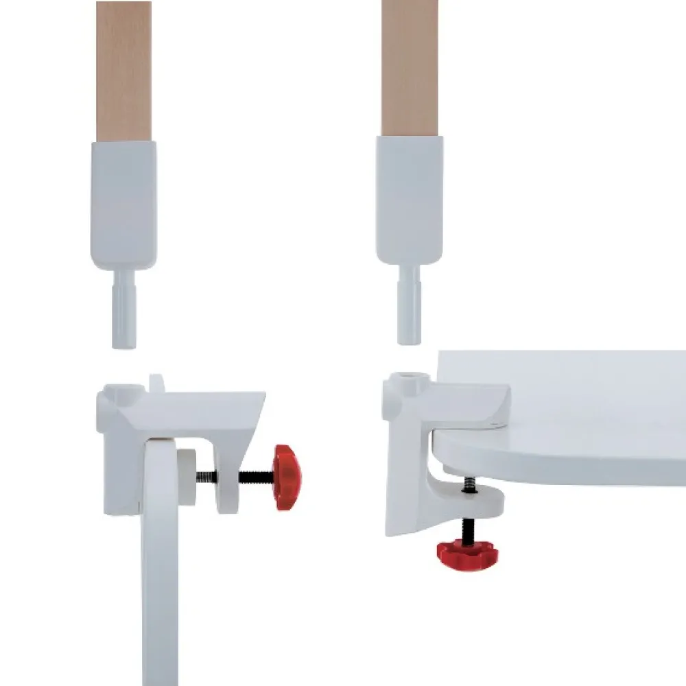 – Brazo de madera ajustable a dos alturas.