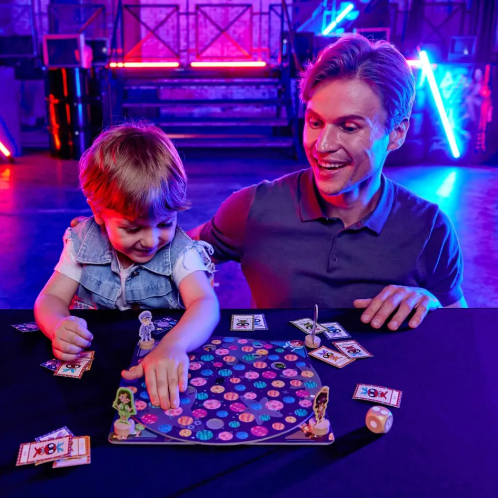 - Incluye tablero giratorio, figuras de policías espaciales y alienígenas.