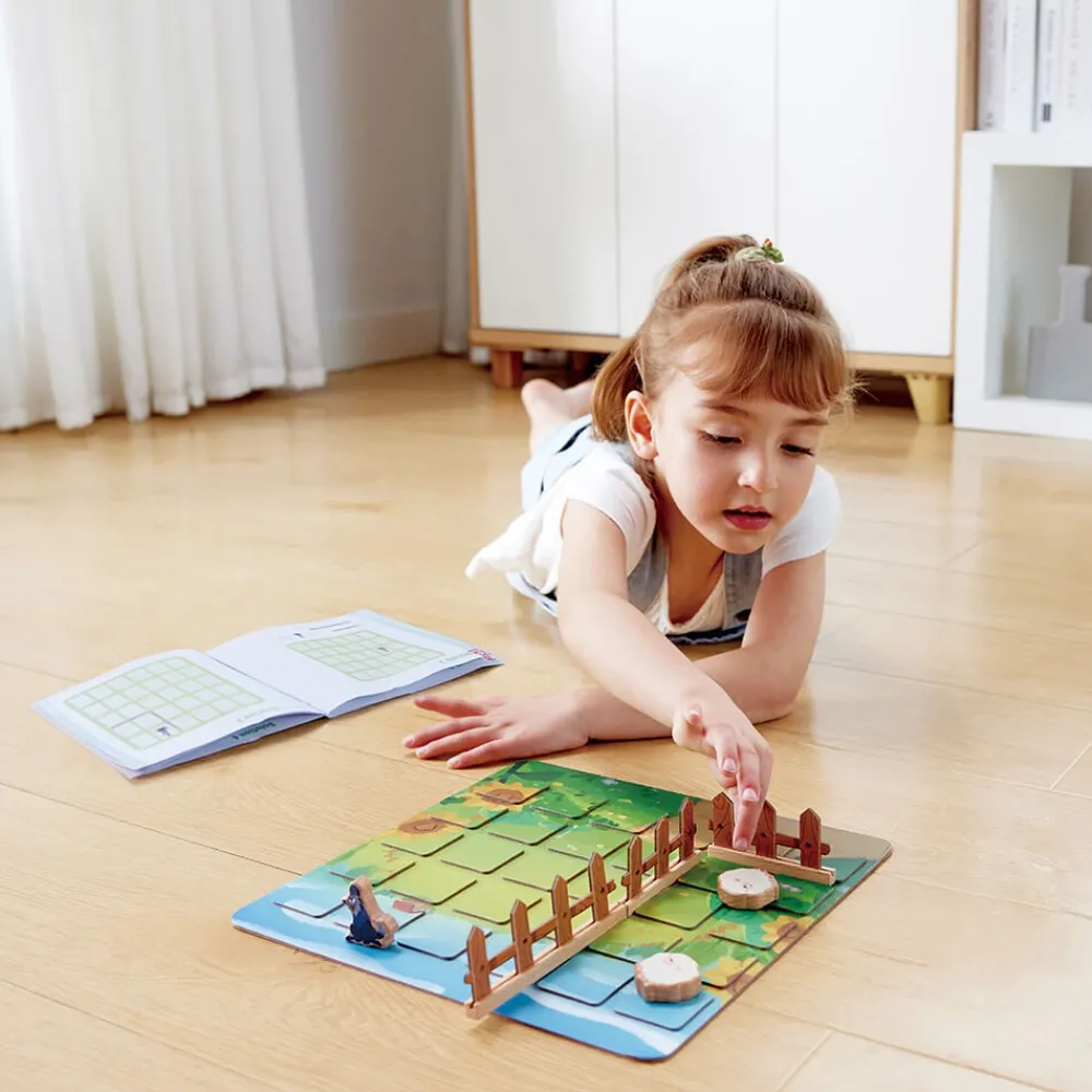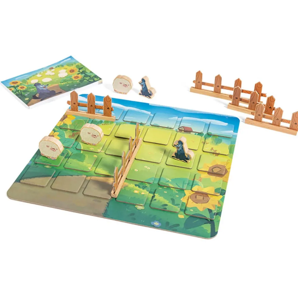 - Este juego incluye un tablero, un libro de niveles, vallas de diferentes tamaños y personajes de ovejas y lobos.