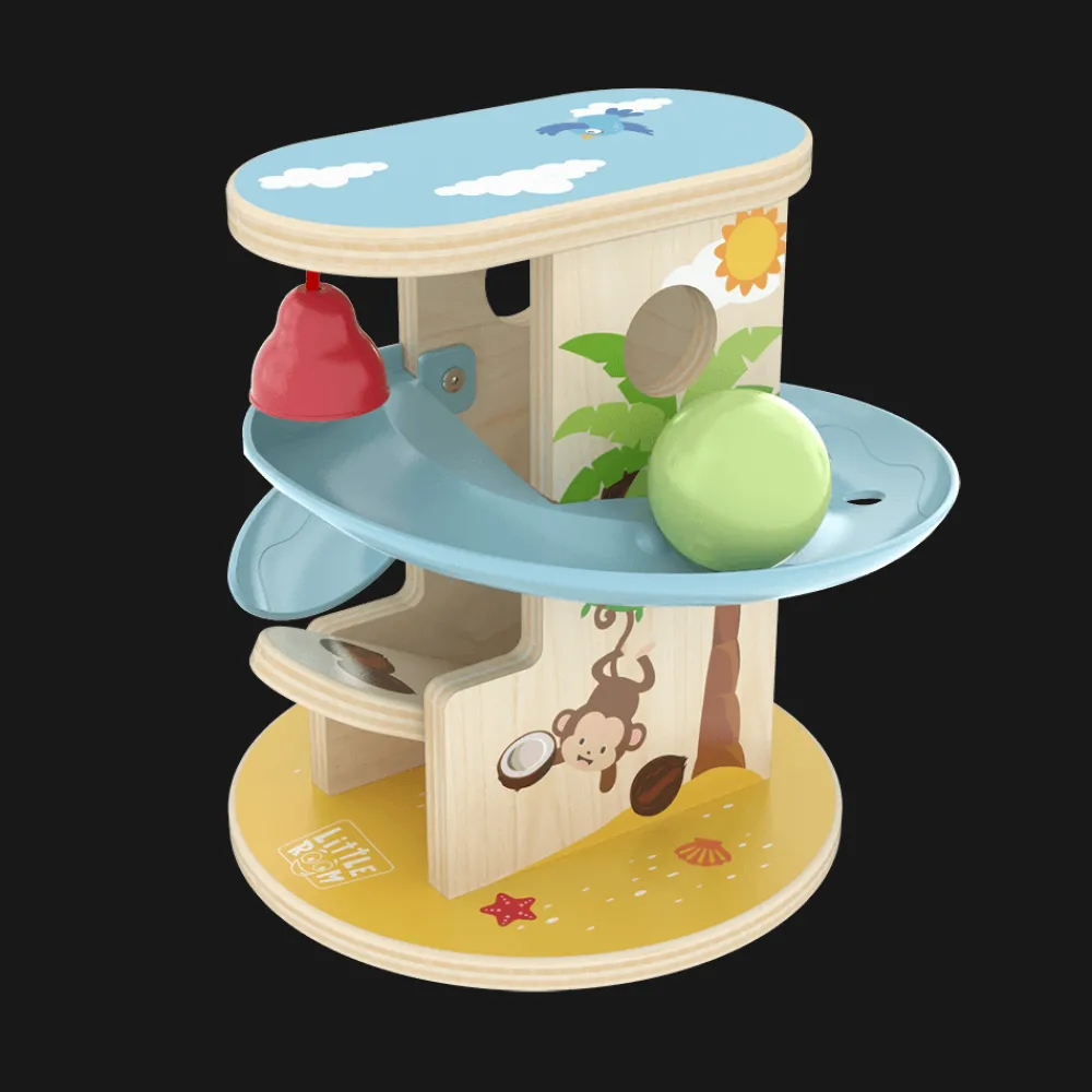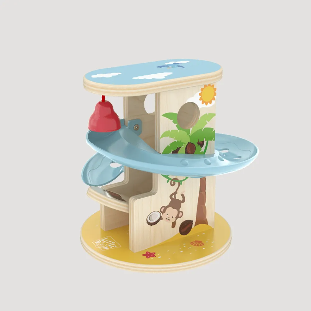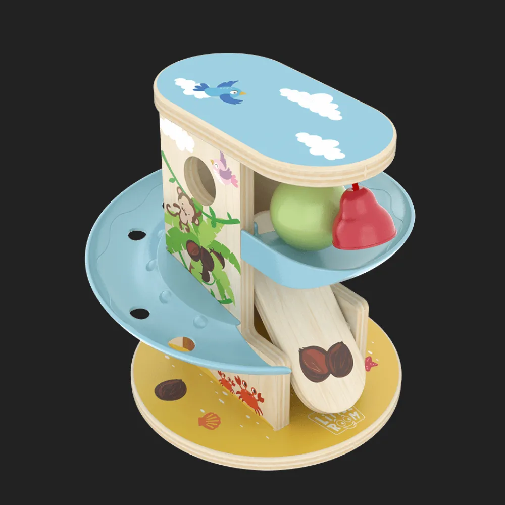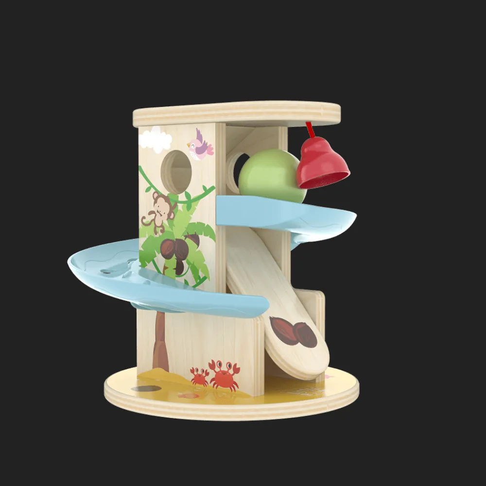 - Tobogán interactivo de madera con forma de árbol, ideal para manos pequeñas.