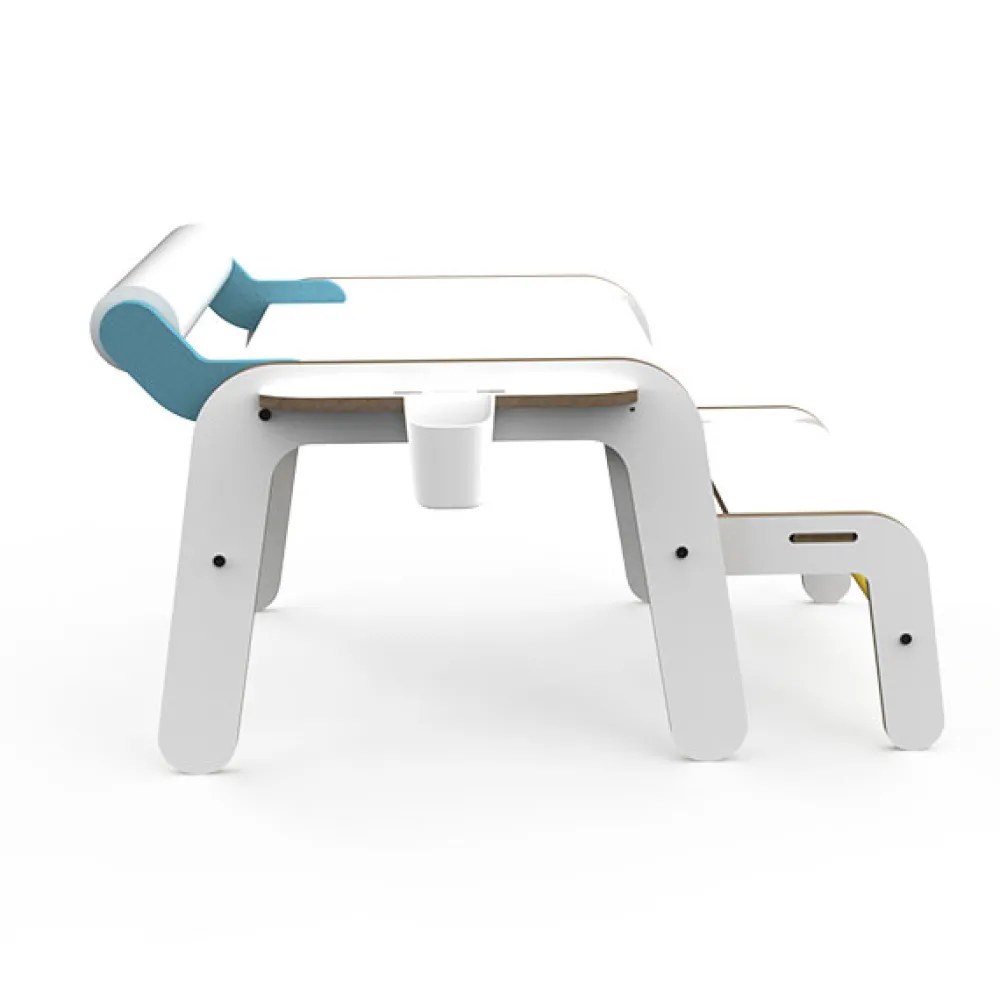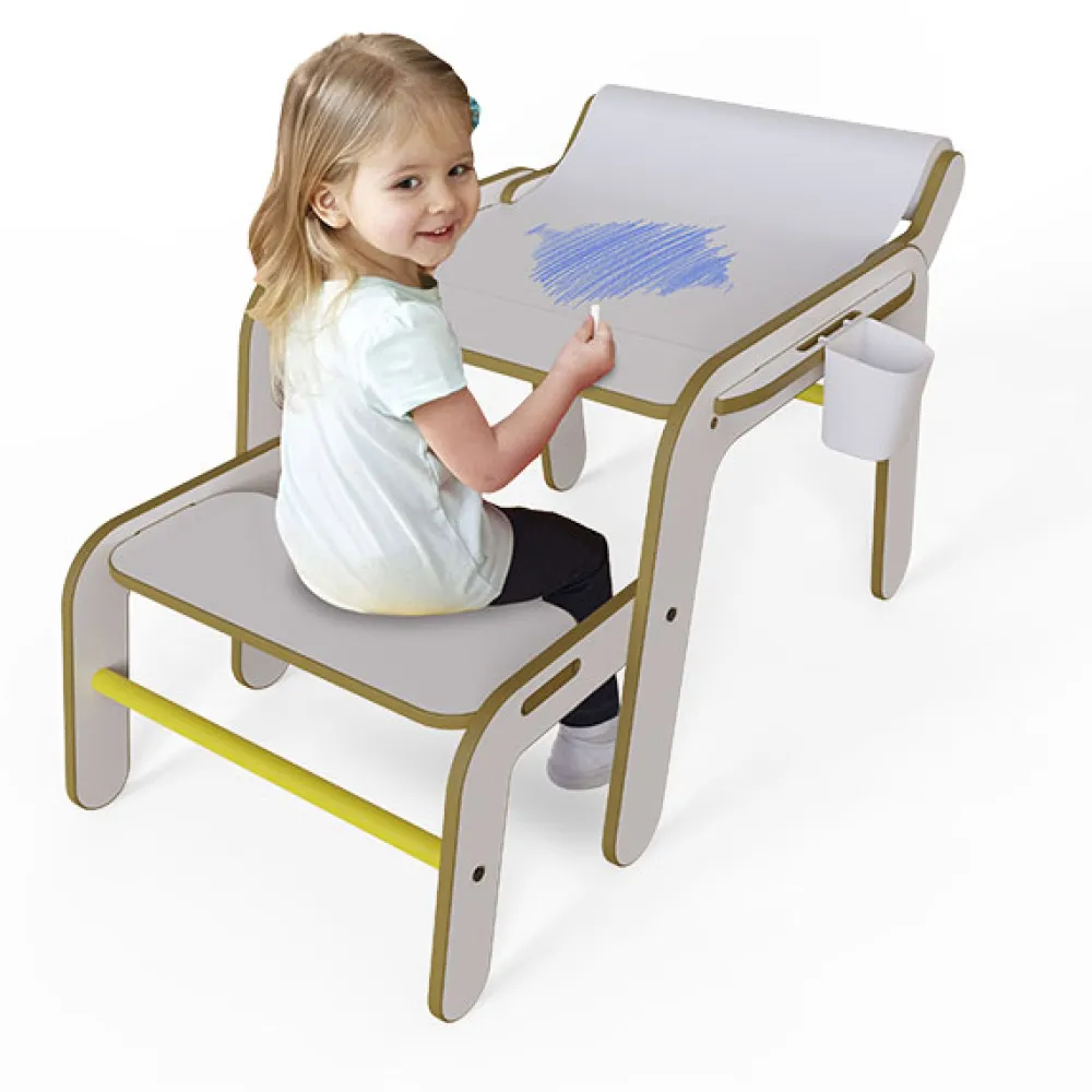 – Se incluye papel blanco de 50m de largo, portalápices y el banco