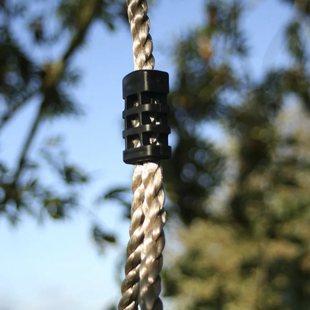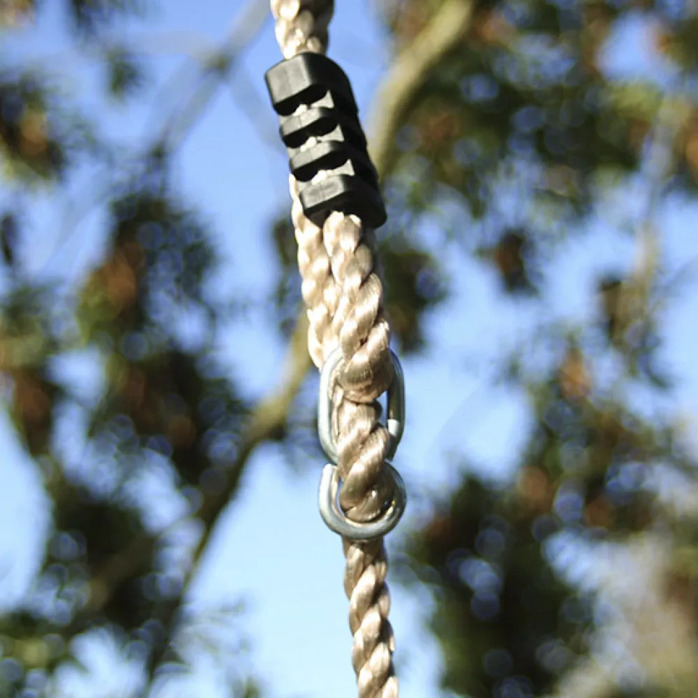 – Sujeción con anillos de suspensión y ochos de ajuste de acero galvanizado con soldaduras de PP de color negro.