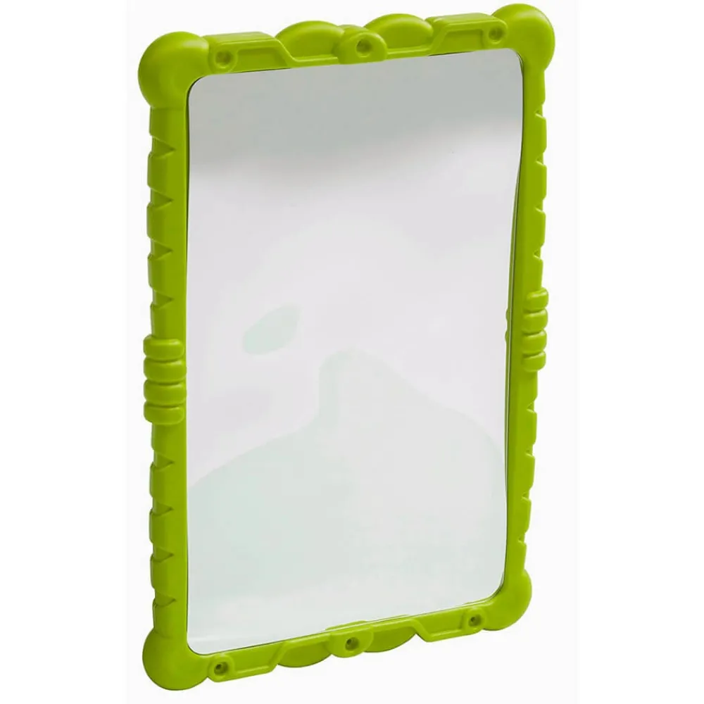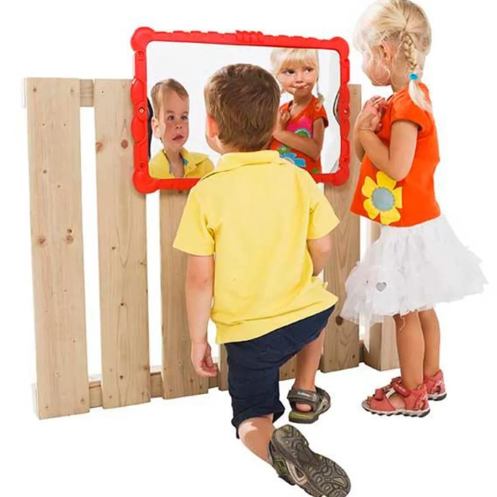 Divertido espejo que deforma la imagen de los niños que se miran en él.