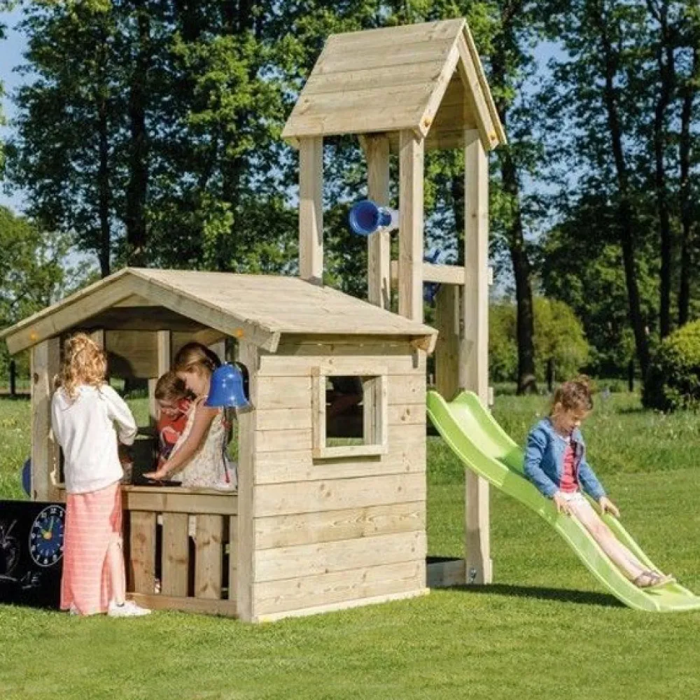 La torre Lookout tiene dos plataformas de diferentes alturas y unas maderas horizontales para poder acceder a ellas y para poder deslizarse por el tobogán.