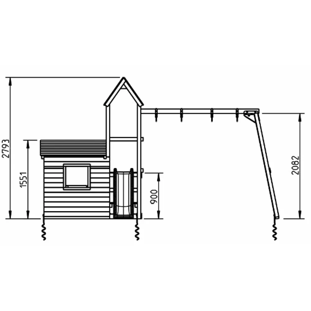 La torre Lookout tiene dos plataformas de diferentes alturas y unas maderas horizontales para poder acceder a ellas y poder deslizarse por el tobogán.