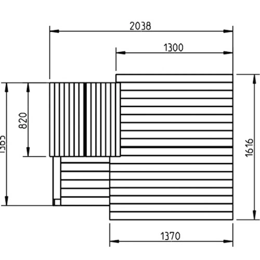 Casita: 155cm (Alto) x 130cm (Ancho) x 161,6cm (Largo)