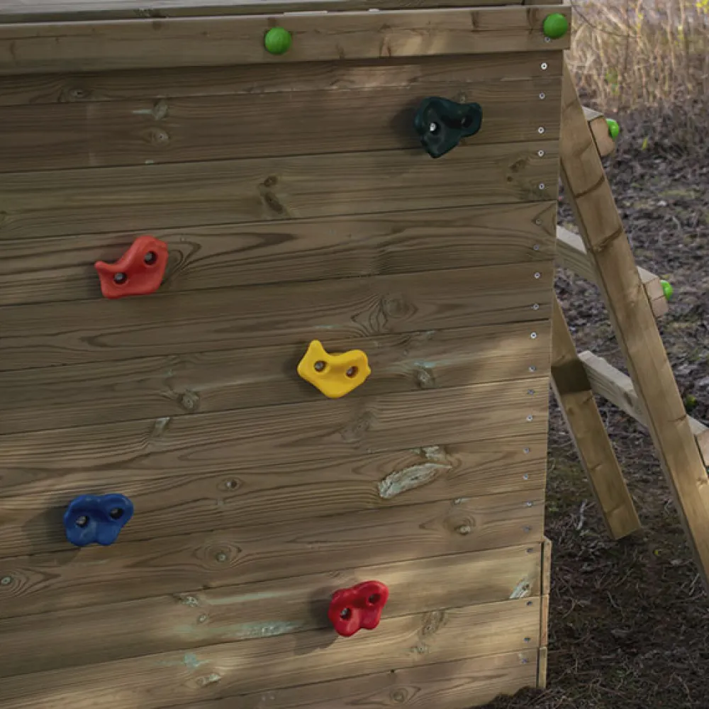 Esta versión incluye pared de escalada y los niños podrán subir a la torre escalando por la pared. Pero este modelo no permite incluir ningún columpio ni el @challenger.