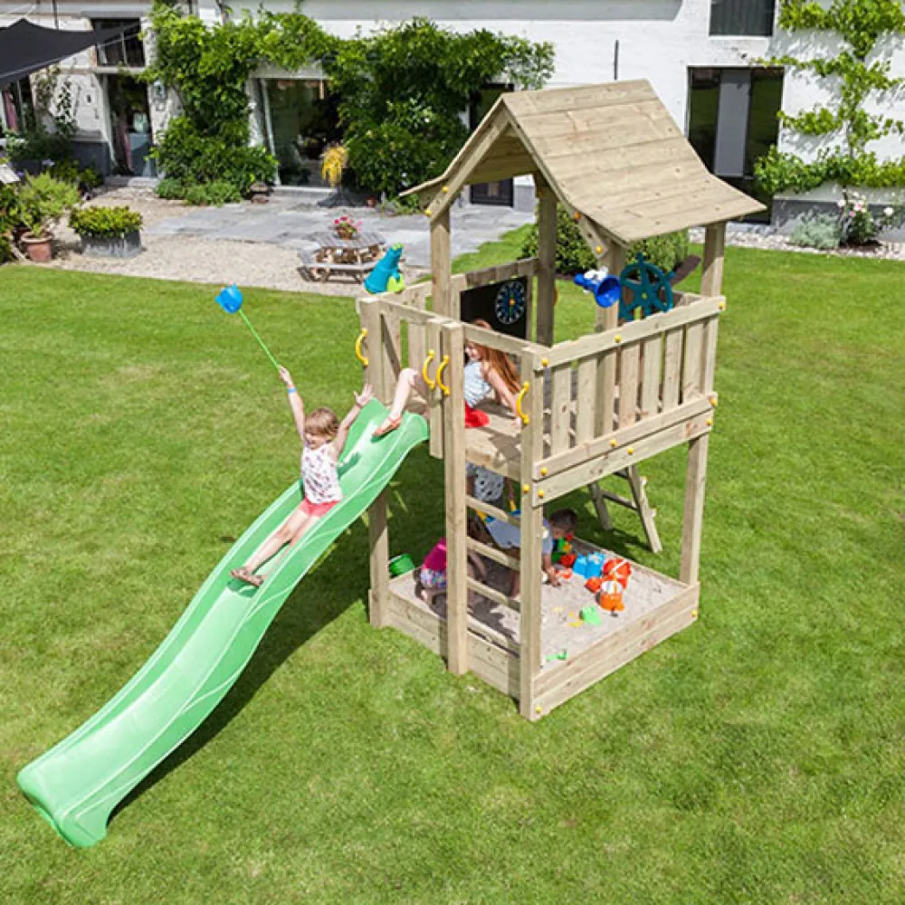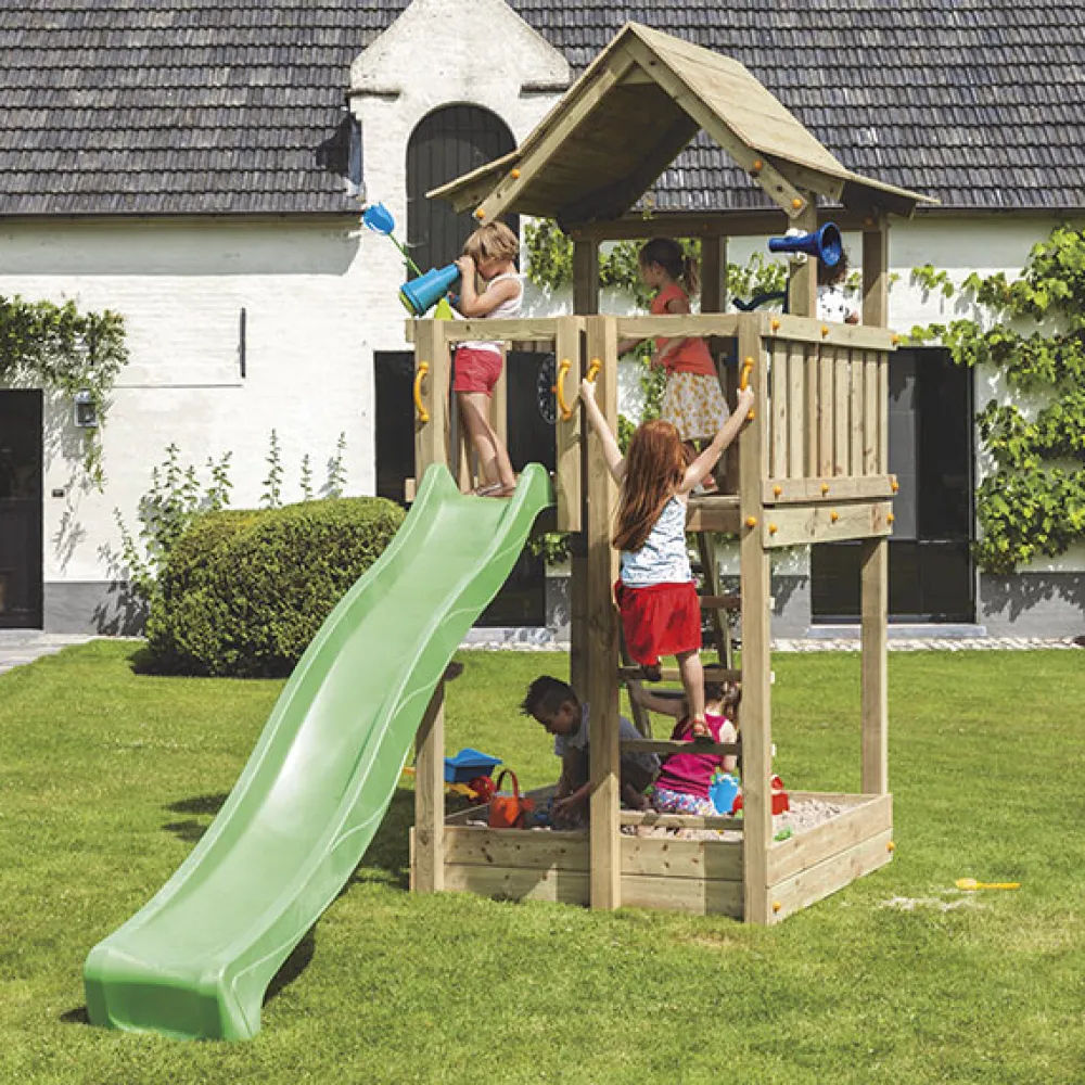 Con ella los peques podrán disfrutar de horas y horas jugando y viviendo mil aventuras. Con esta magnífica y espaciosa torre de actividades pueden subir y bajar sin parar del tobogán, entretenerse cavando en la arena o bien ser un súper vigilante en el mirador de la torre.