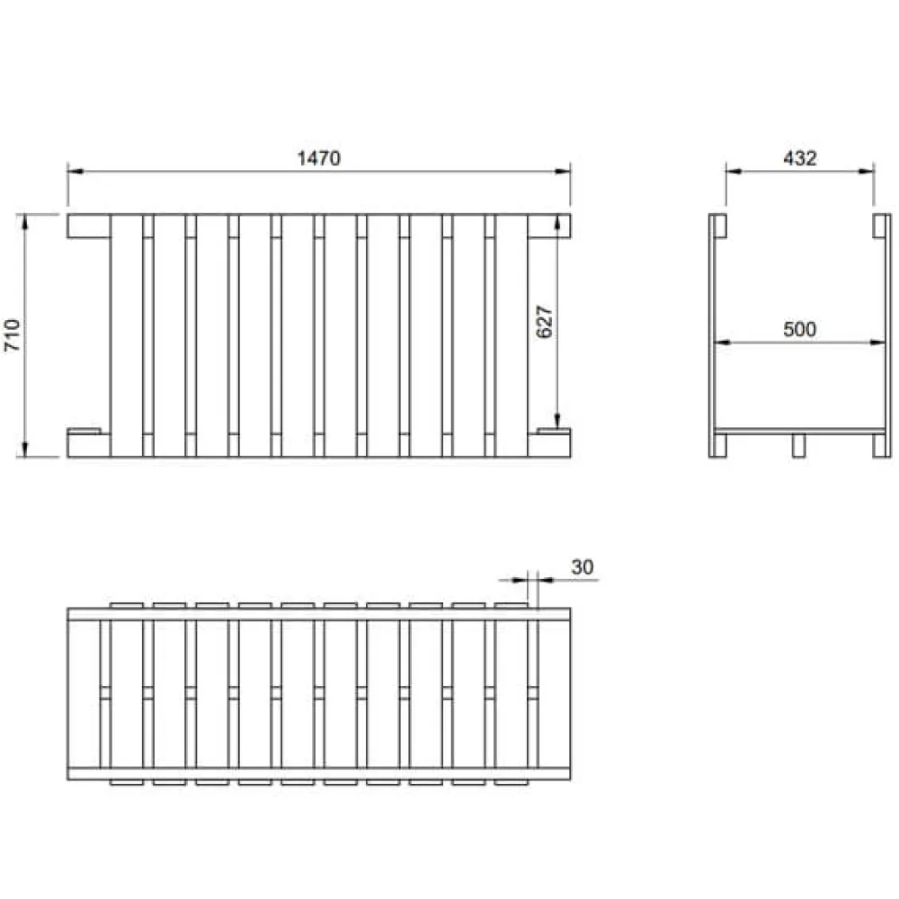 147 cm (largo) x 50 cm (ancho) x 71 cm (alto)