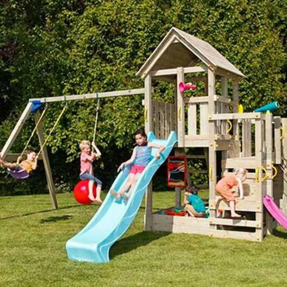 Este parque destaca por su magnífico acabado, diseñado y hecho de madera. Es una construcción estable y segura para que los niños y niñas puedan disfrutar tranquilamente.