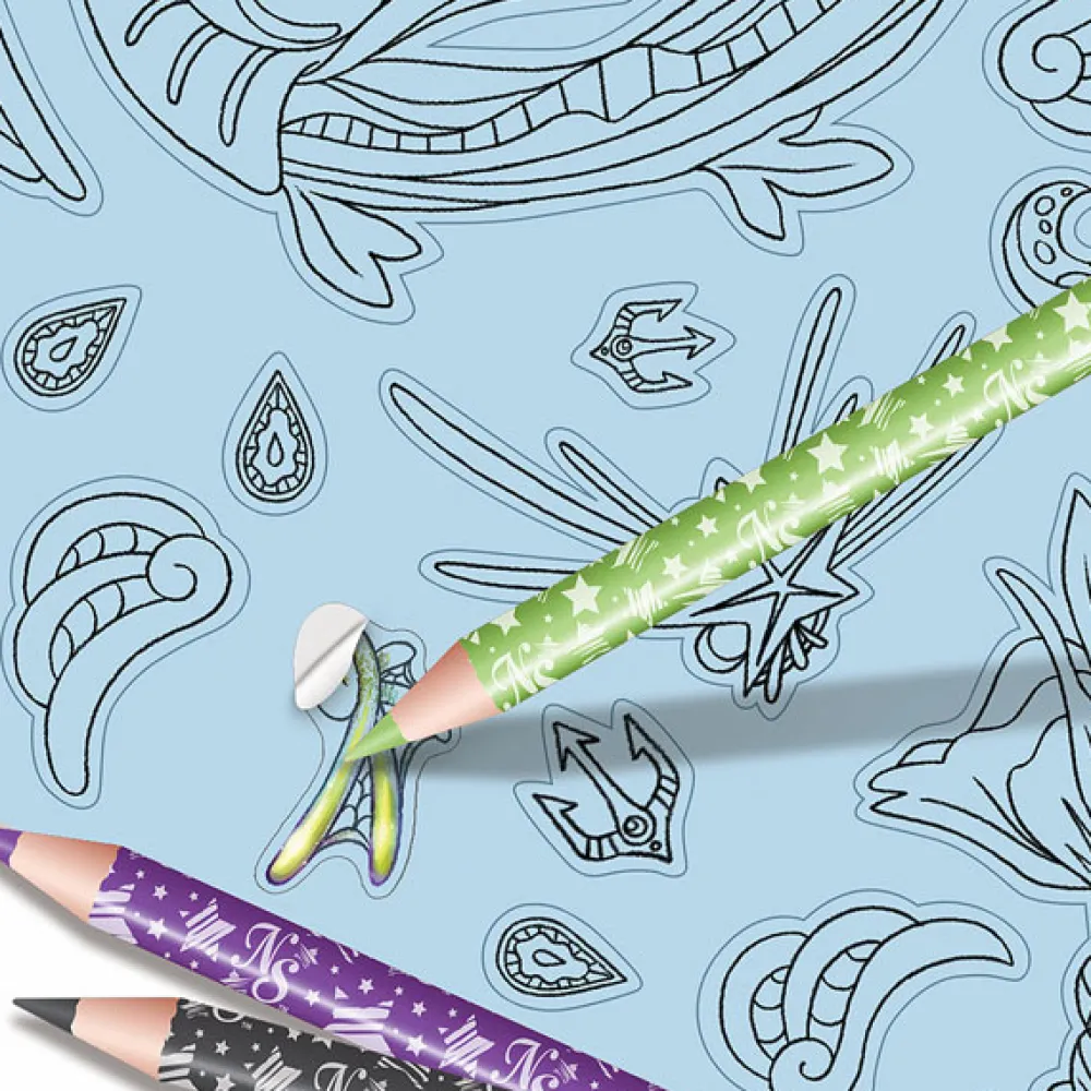 – 35 páginas de bocetos morados, 80 plantillas, 80 diseños de inspiración, 4 modelos para rascar, 2 páginas de stickers, 2 páginas de stickers para colorear, 12 técnicas de dibujo y 3 secciones diferentes y manual de instrucciones.