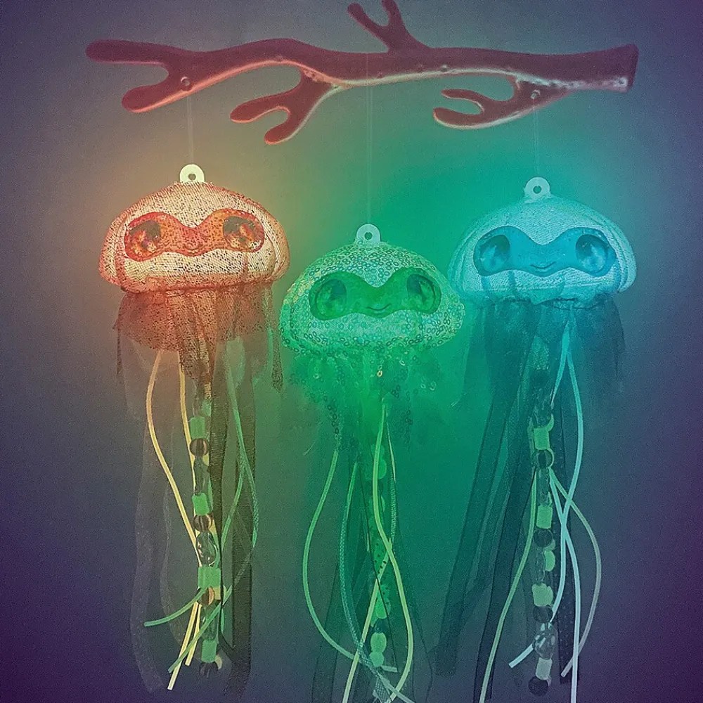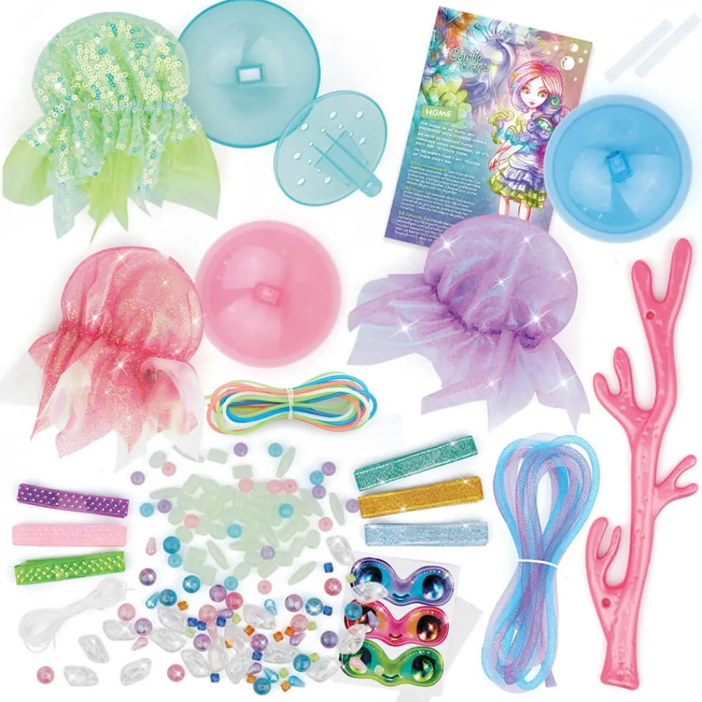 - Incluye todas las piezas necesarias: 3 cúpulas luminiscentes, soporte de rama de coral, 3 cubiertas de tela para las cúpulas, 63 cuentas luminiscentes, 70 cuentas de colores, 3 cordones de malla, cinta, cordón luminoso y alambre de plástico, 3 adhesivos de purpurina, la historia completa de Coralia e instrucciones a color.