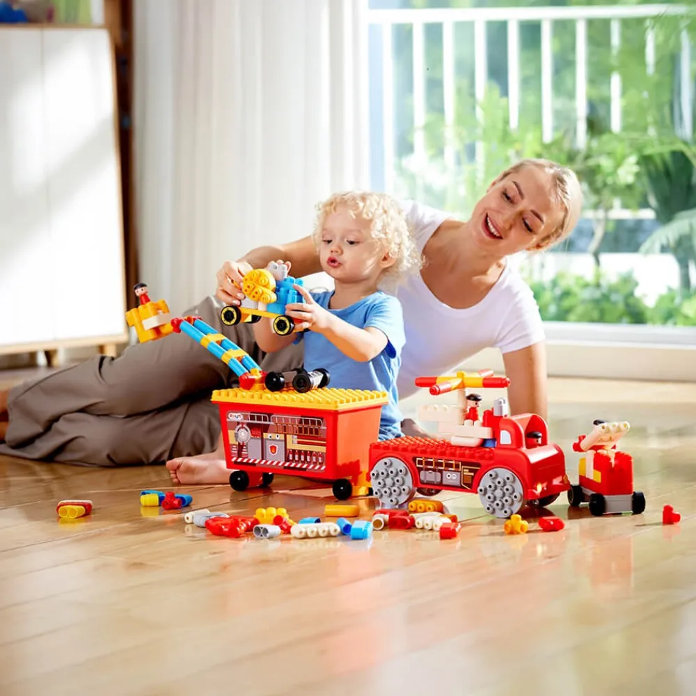 - Camión de bomberos con 107 piezas para construir y aprender.