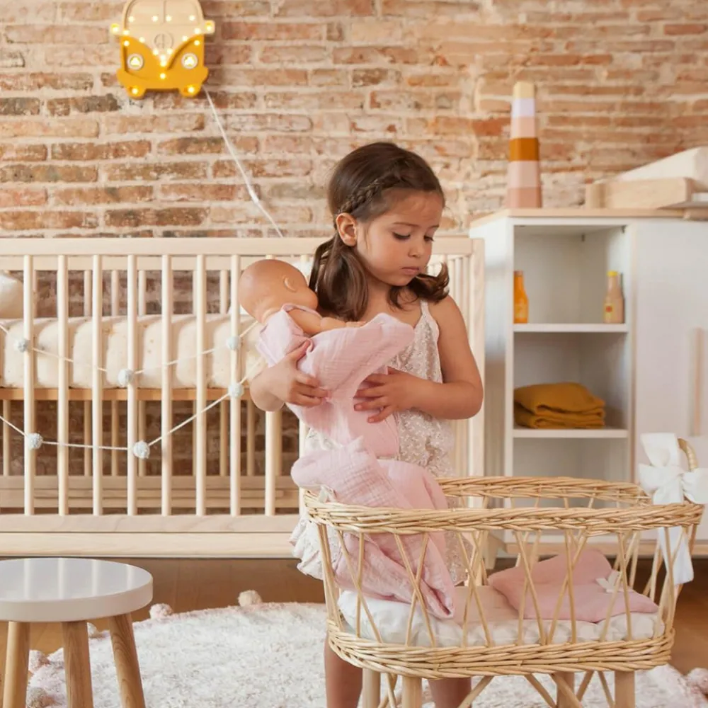 - Materiales: textil 100% algodón orgánico y cuerpo de vinilo (los muñecos no contienen ftalatos).